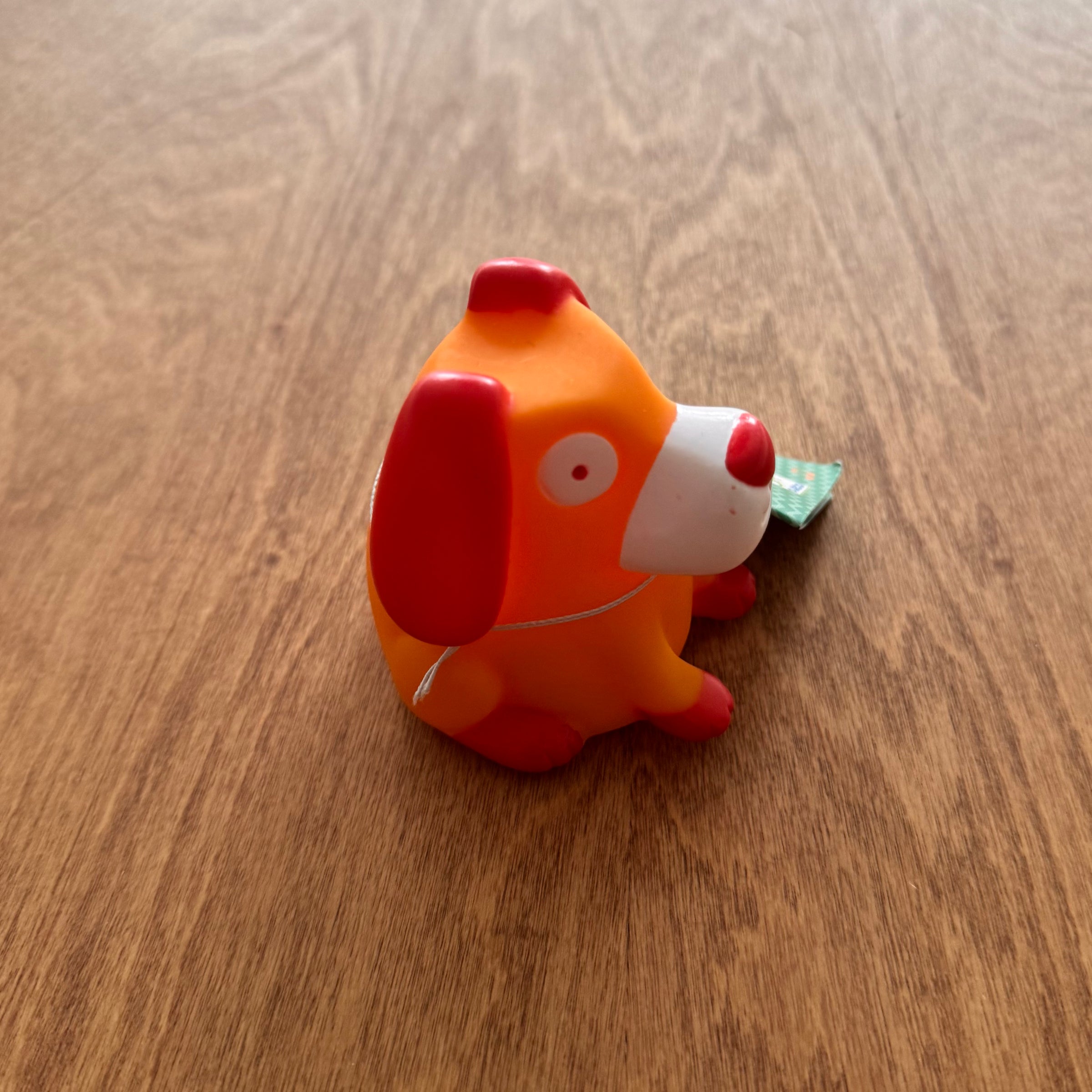 A cute plastic dog that your children will love to chew on or flip around.