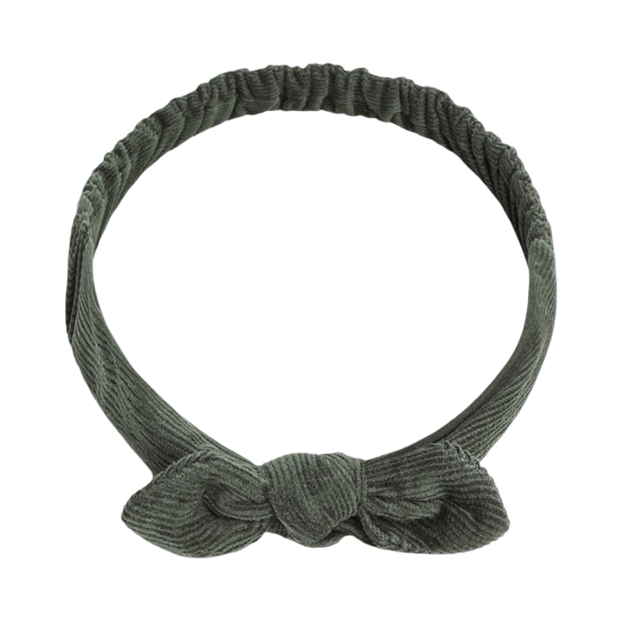 Baby headband set with a scrunchy elastic band for added comfort, topped off with a sweet finished bow.
