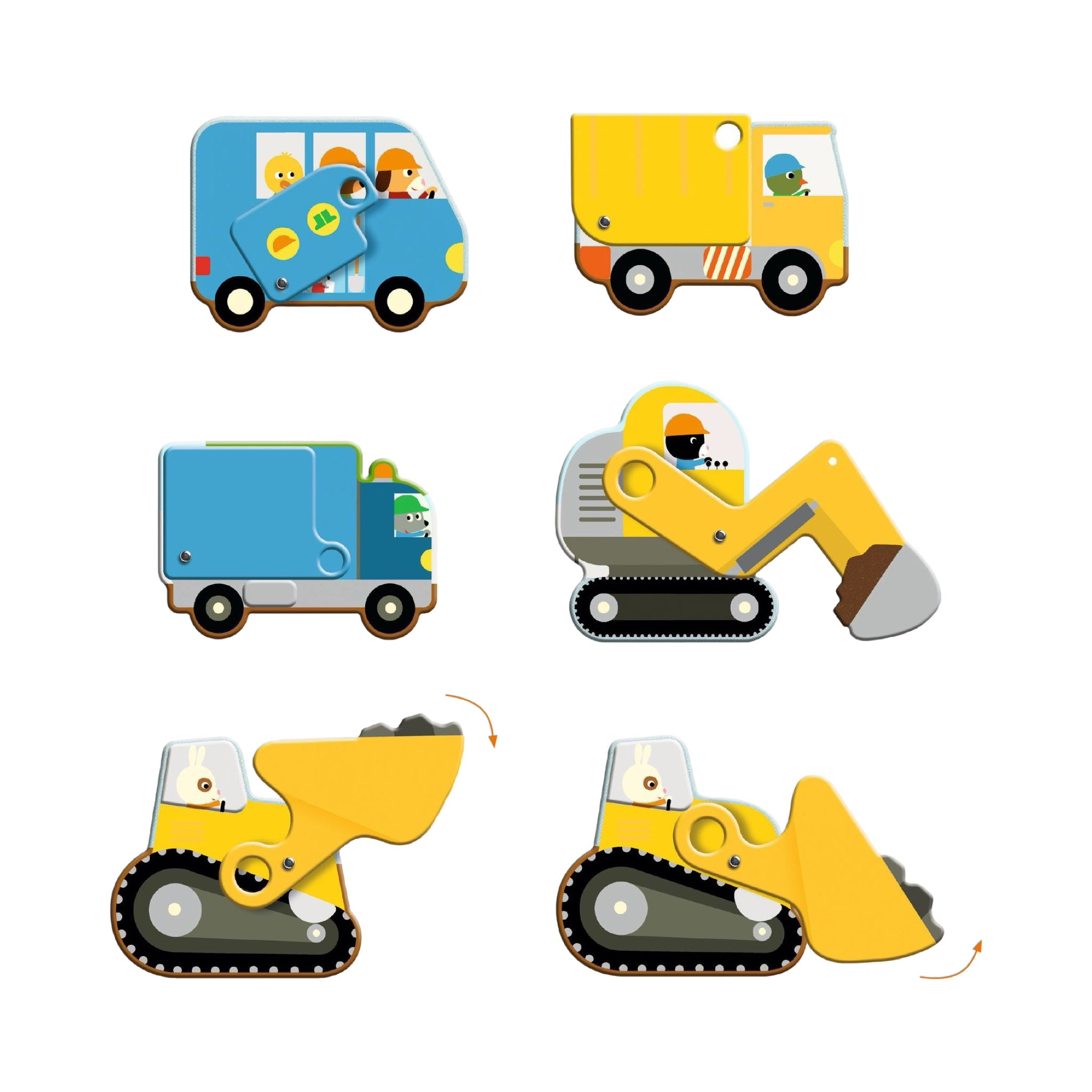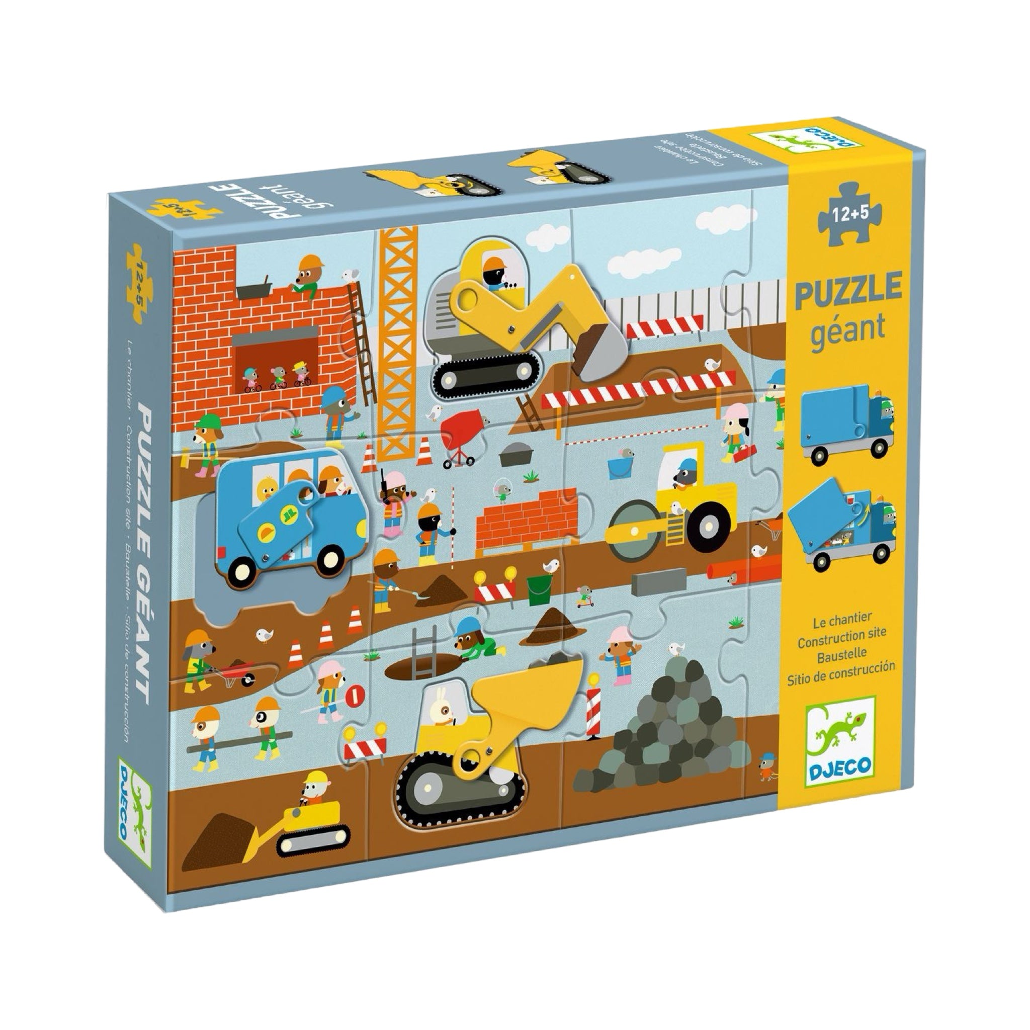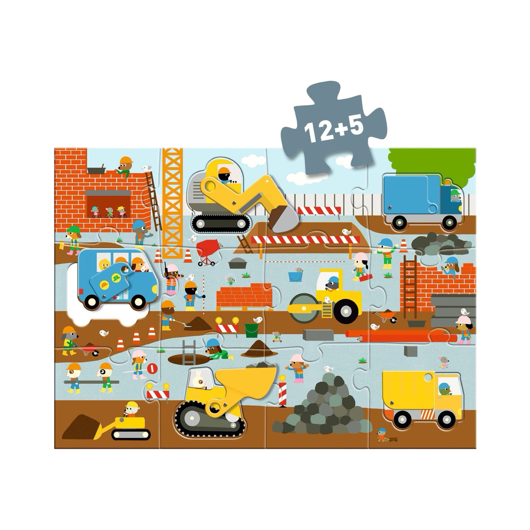 With its 12 giant articulated pieces, this puzzle truly comes to life. The child fits each piece together to create a busy building site, where they can place the digger, bus and lorry in their correct positions. An entertaining activity that combines thinking, dexterity and imagination!