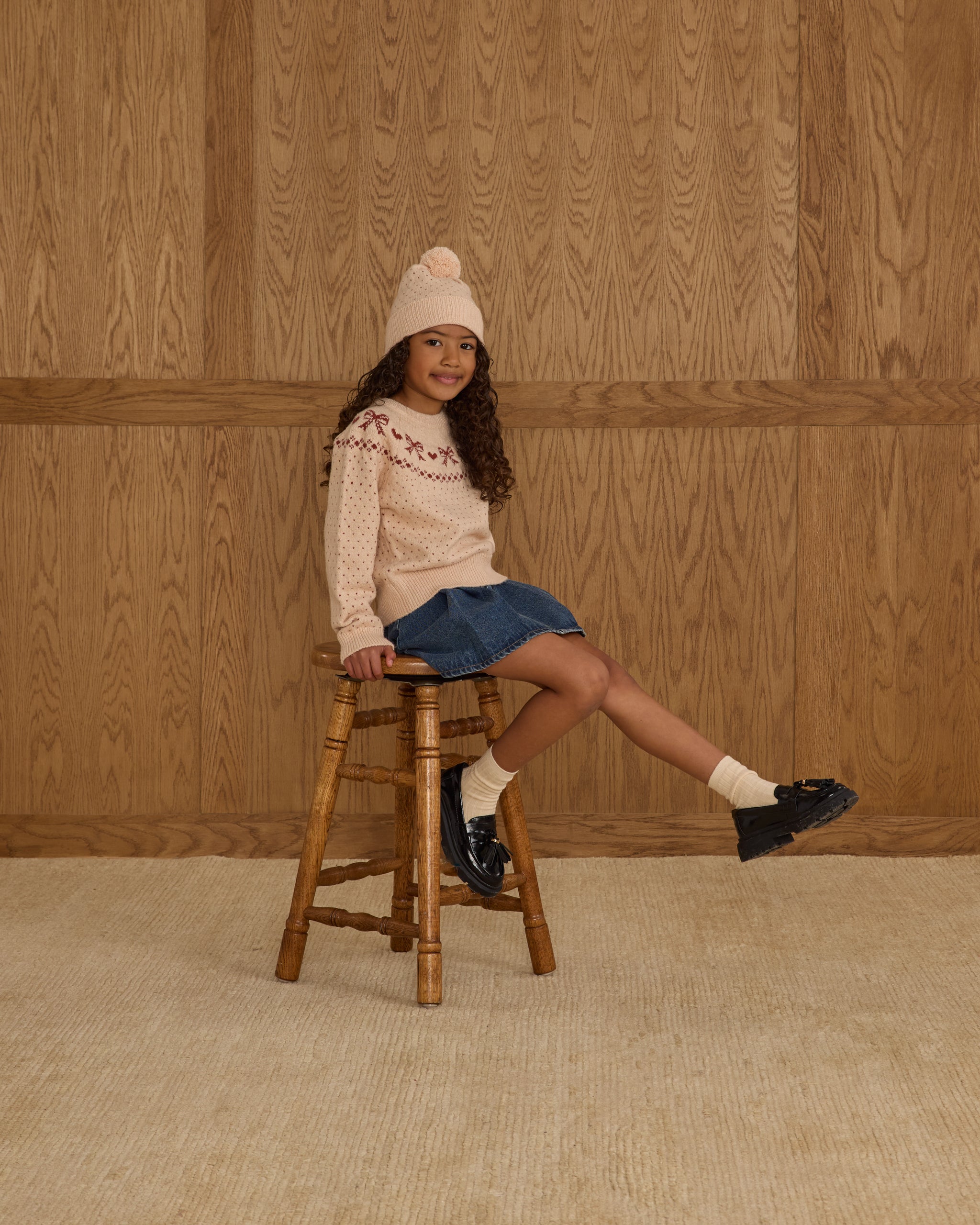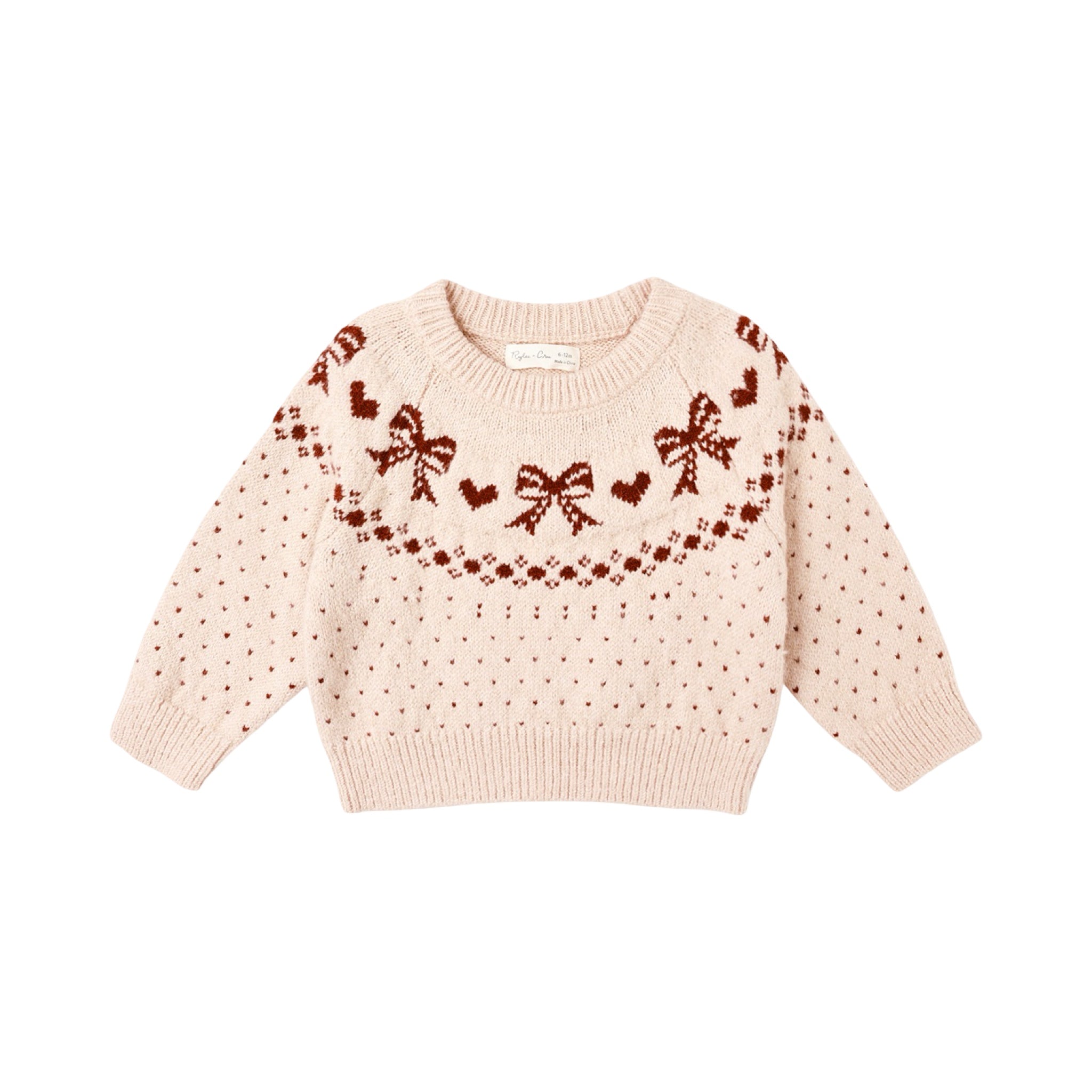 Ce chandail Fair Isle est un tricot confortable avec un joli motif de nœud et un motif traditionnel en jacquard. Conçu dans une base de pétales douces avec des accents chaleureux, il apporte à la fois confort et charme à porter au quotidien.
