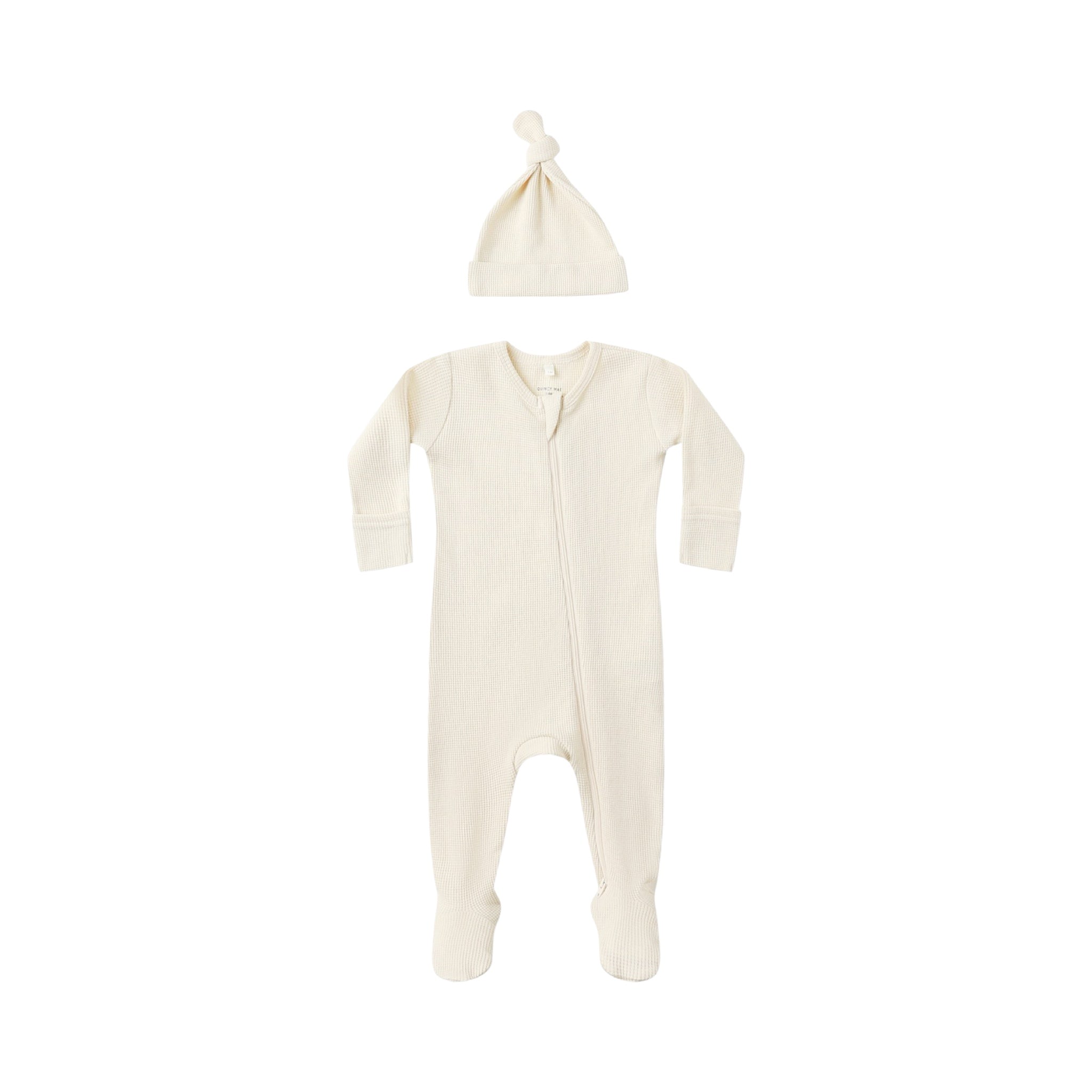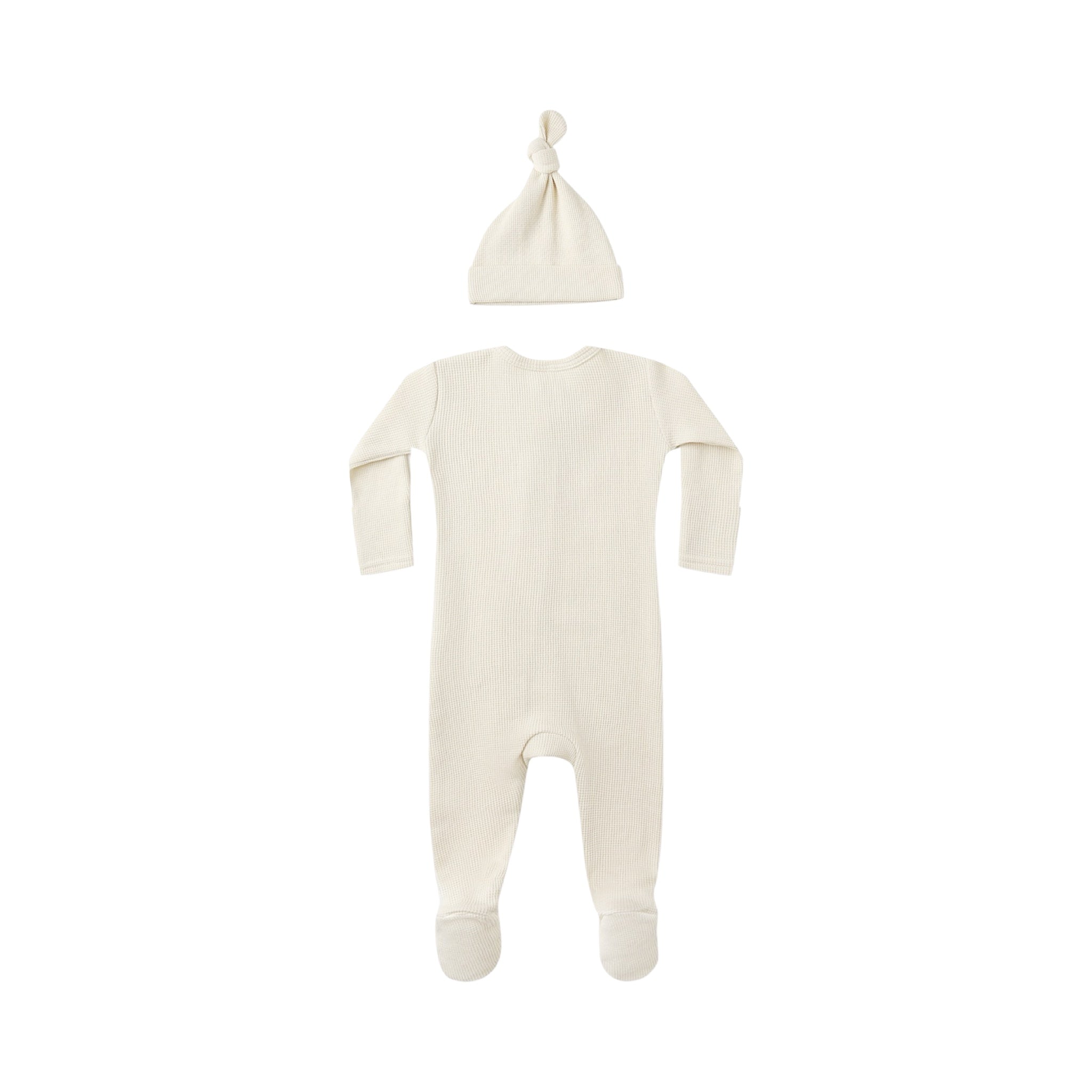 Fabriqué à partir de notre tissu gaufré doux, ce pyjama à manches longues garde votre tout-petit au chaud toute la saison. Associé à un chapeau noué, c’est l’ensemble parfait pour le confort et la chaleur. Tailles NB – 3 à 6 M avec mitaines repliables. Les tailles 6-12M - 12-18M comportent des points en caoutchouc sur les semelles.
