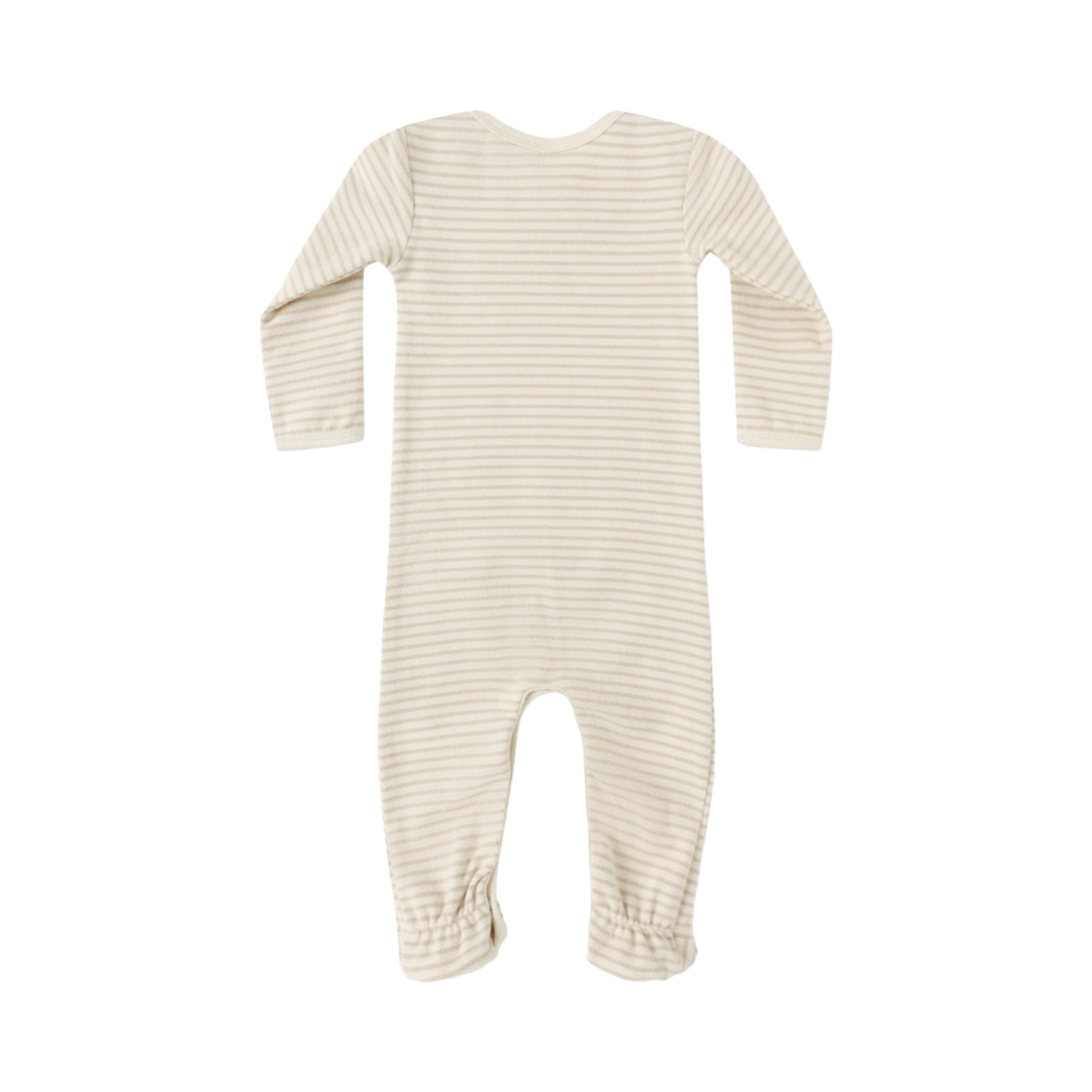 Notre combinaison à pieds est conçue pour le confort et la facilité, avec des boutons-pression le long de l'entrejambe pour un changement facile. Les tailles NB, 0 à 3 mois et 3 à 6 mois comprennent des mitaines repliables, tandis que la taille 6 à 12 mois comporte des semelles antidérapantes pour soutenir les petits mouvements.